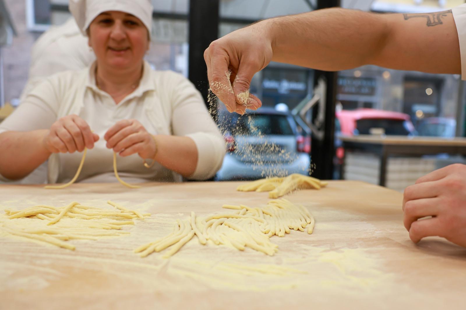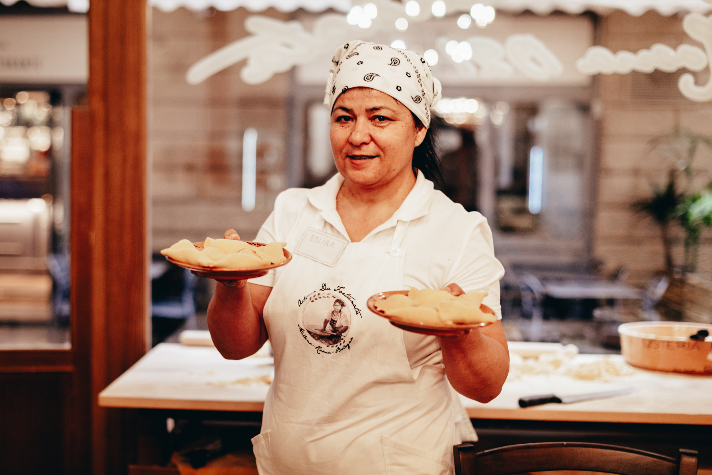 “The showcase of the pasta makers, without any advertising, stands as a symbol of transparency and pride in displaying the hard work behind every dish. The choice to use fresh, homegrown ingredients, such as tomatoes and potatoes, reflects a passion for quality and a commitment to sourcing. Grandma, with her 92 years of experience, shares her wisdom and advice, inspiring young people to nurture a love for genuine food.